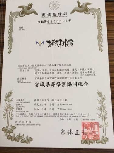 かねてから出願しておりました「お葬式相談員」についての商標が登録完了しました。ホームページは後日更新しますが、まずは速報としてお知らせいたします。