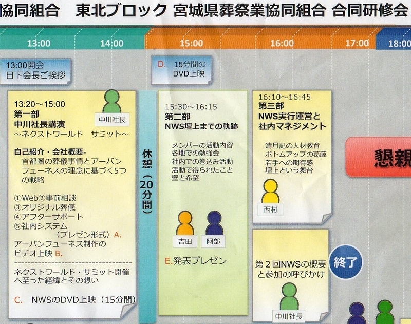 2013-02-19 全葬連 東北ブロック 宮葬協 合同研修会 開催の御案内 活動報告 来る2月28日 13時より 仙台ガーデンパレスにおいて ネクストワールドサミット 代表で㈱アーバンフューネス 代表取締役の中川社長をお招きして研修会が開催されます。 http://www.girei.org/information.html 次代を担う、若手社員の育成に是非、ご参加下さいませ お問い合わせは 宮葬協 事務局まで